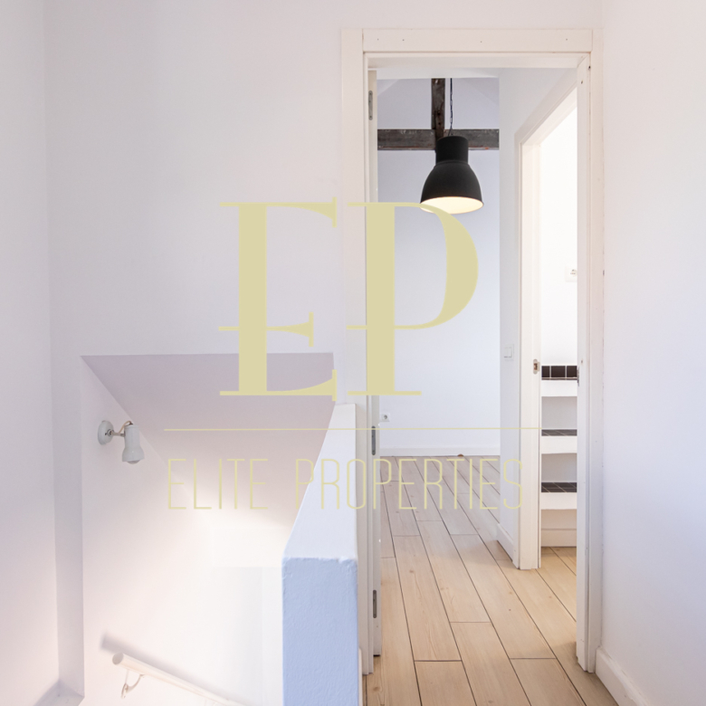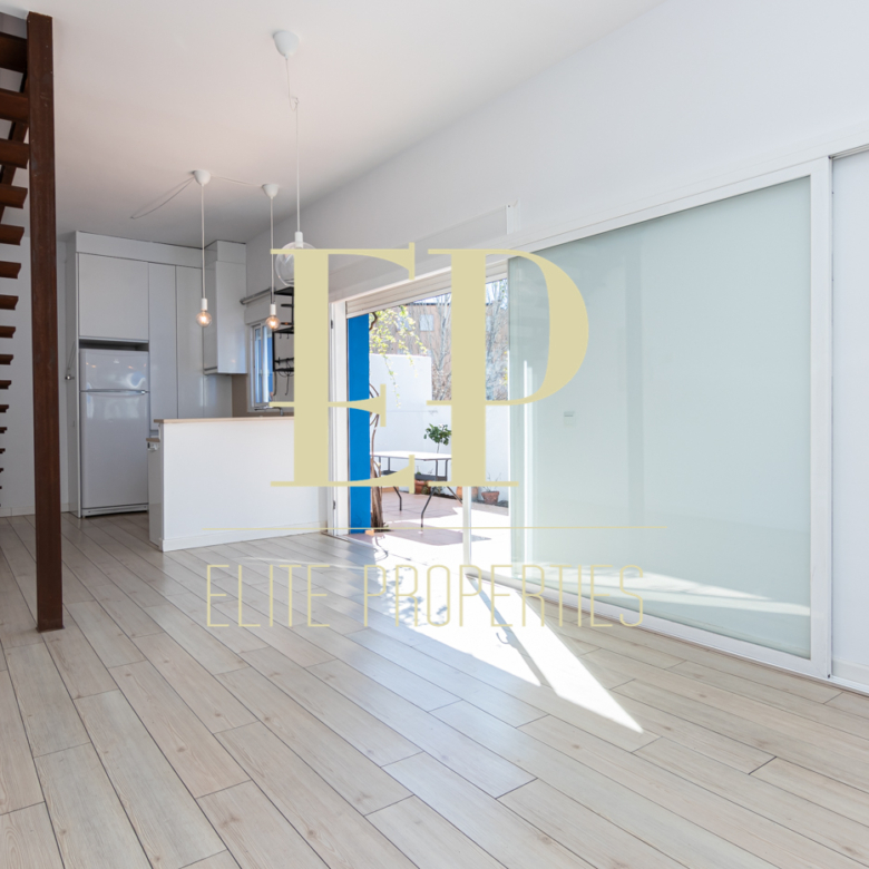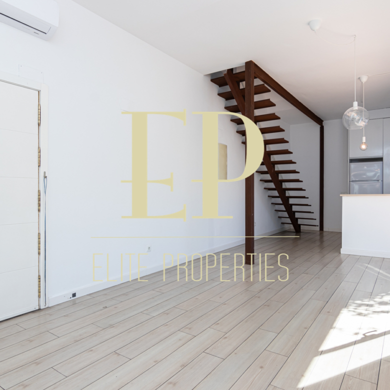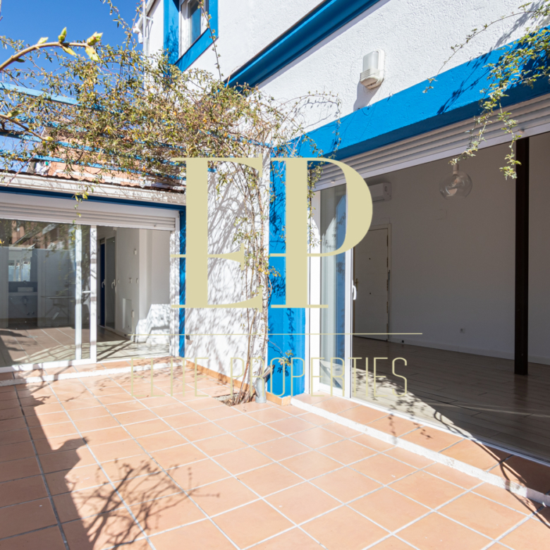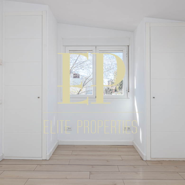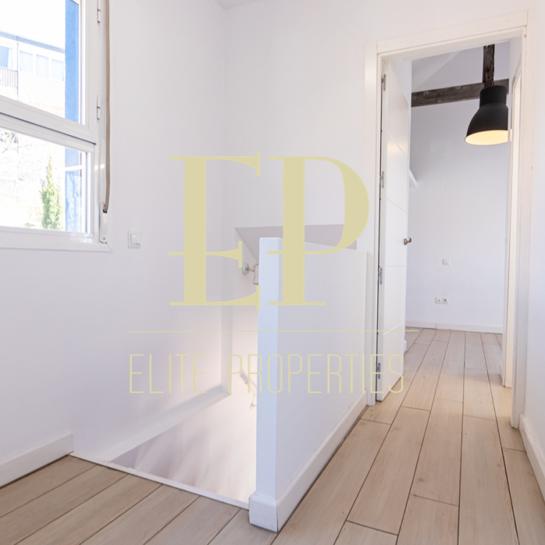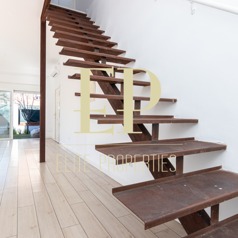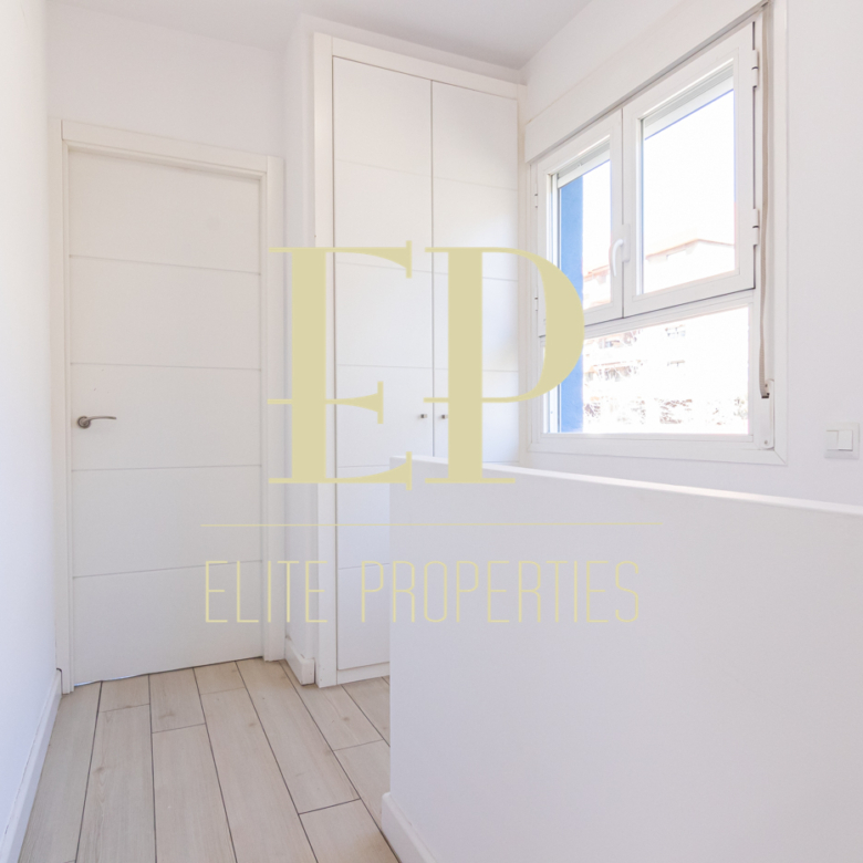 Los 160 m² de los que dispone la vivienda se distribuyen de la siguiente manera; en la primera planta de 60 m² nos encontramos con el salón, el comedor, la cocina (completamente equipada) y también cuenta con dos terrazas separadas de 20 m² cada una a las que se accede por amplios y nuevos ventanales, muy luminosas gracias a que no tiene edificios cerca que le den sombra. Por una escalera de hierro de coleccionista se accede a la planta de arriba donde encontramos dos habitaciones cada una con su baño en suite. La planta de arriba también de 60 m² cuenta con numerosos armarios empotrados con gran capacidad y una buhardilla a la que se accede bajando una trampilla. La calefacción es individual de gas natural con suelo radiante, existe la posibilidad de poner aire acondicionado. Está situado en el barrio de Arturo Soria, una zona residencial, pero con mucha oferta comercial (bares, restaurantes, supermercados) además de contar con muchos de los mejores colegios de Madrid. Siendo una zona muy bien comunicada mediante transporte público y con fácil salida a la M30.