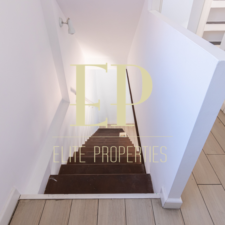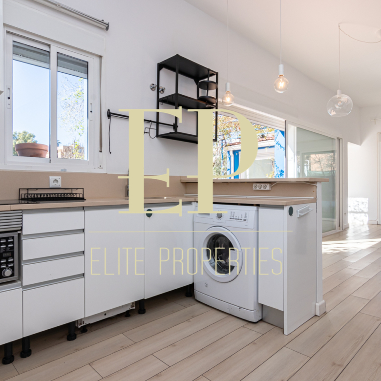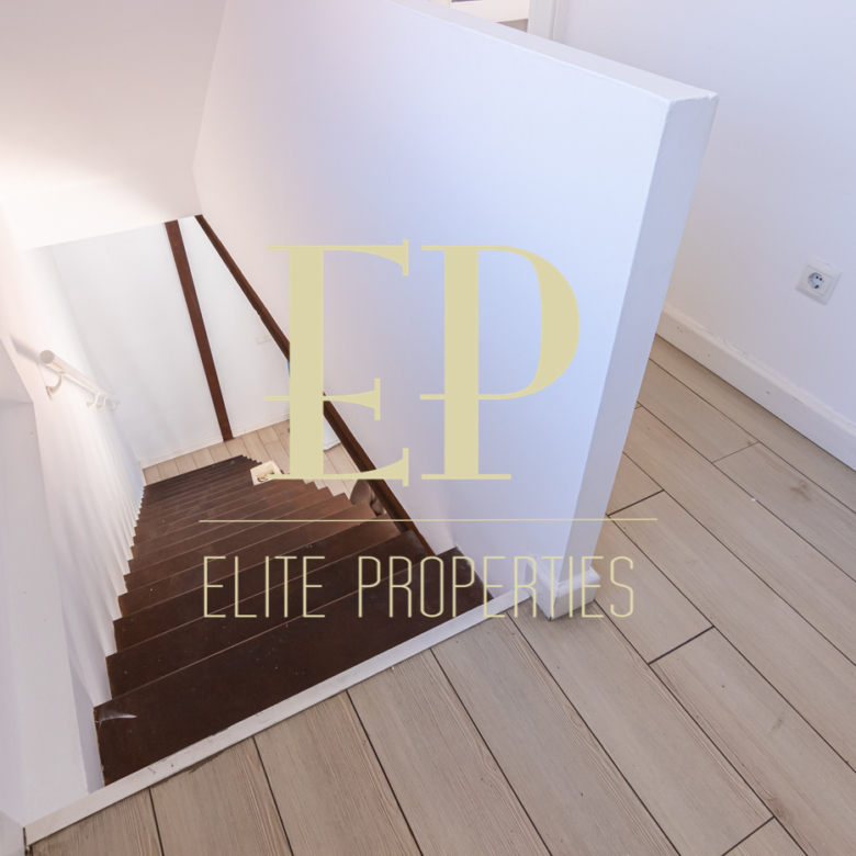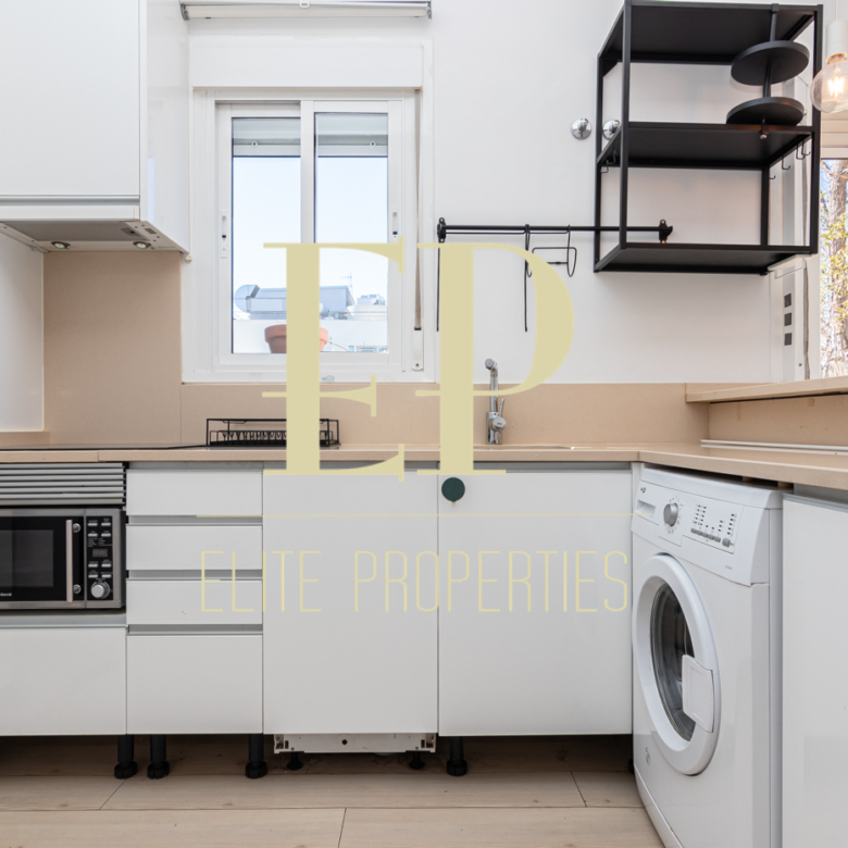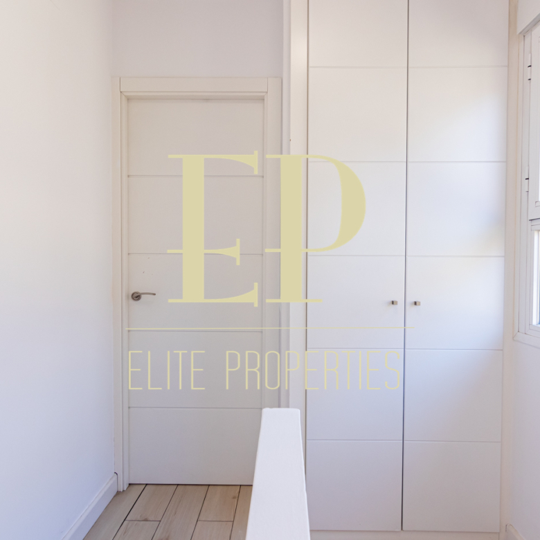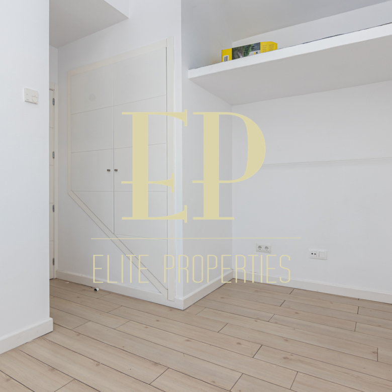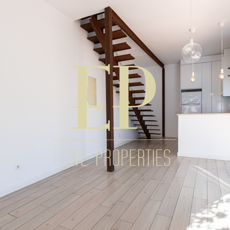 Los 160 m² de los que dispone la vivienda se distribuyen de la siguiente manera; en la primera planta de 60 m² nos encontramos con el salón, el comedor, la cocina (completamente equipada) y también cuenta con dos terrazas separadas de 20 m² cada una a las que se accede por amplios y nuevos ventanales, muy luminosas gracias a que no tiene edificios cerca que le den sombra. Por una escalera de hierro de coleccionista se accede a la planta de arriba donde encontramos dos habitaciones cada una con su baño en suite. La planta de arriba también de 60 m² cuenta con numerosos armarios empotrados con gran capacidad y una buhardilla a la que se accede bajando una trampilla. La calefacción es individual de gas natural con suelo radiante, existe la posibilidad de poner aire acondicionado. Está situado en el barrio de Arturo Soria, una zona residencial, pero con mucha oferta comercial (bares, restaurantes, supermercados) además de contar con muchos de los mejores colegios de Madrid. Siendo una zona muy bien comunicada mediante transporte público y con fácil salida a la M30.
