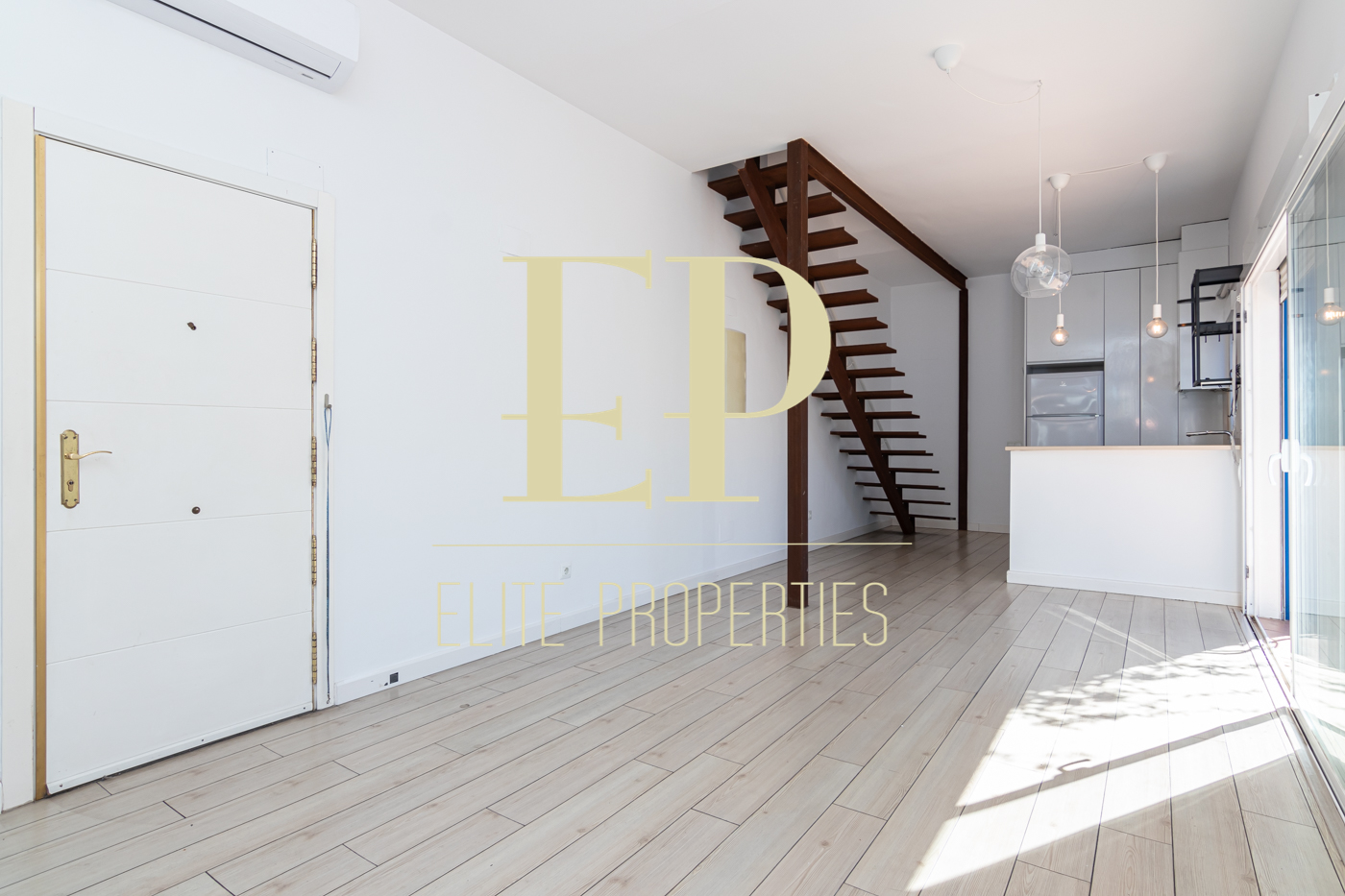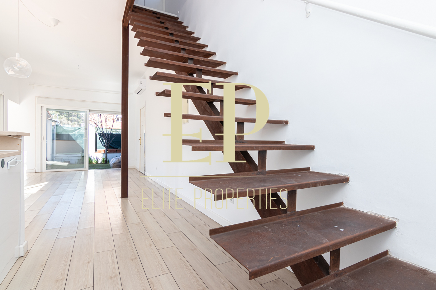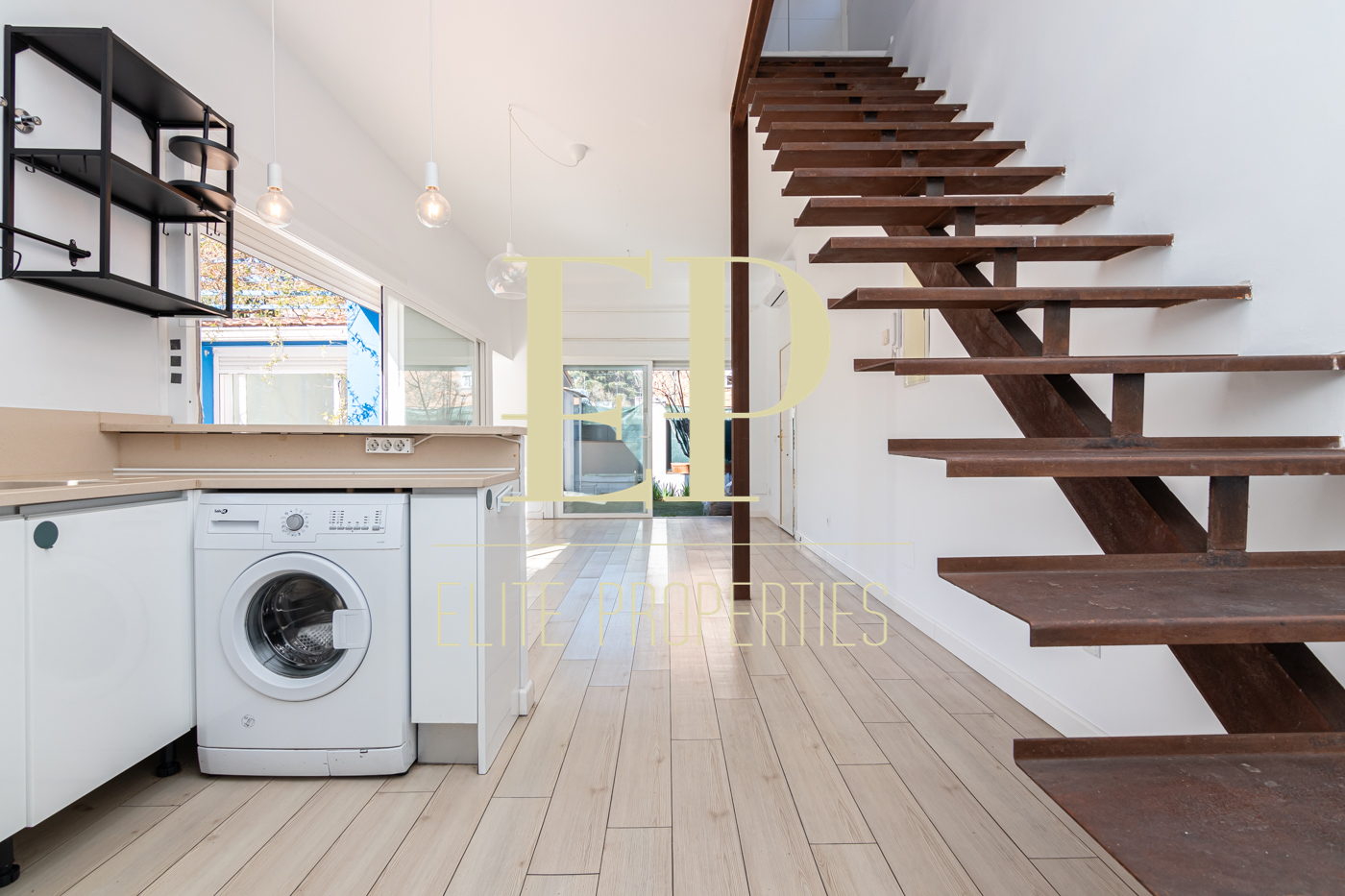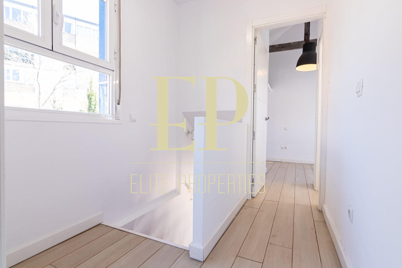 Los 160 m² de los que dispone la vivienda se distribuyen de la siguiente manera; en la primera planta de 60 m² nos encontramos con el salón, el comedor, la cocina (completamente equipada) y también cuenta con dos terrazas separadas de 20 m² cada una a las que se accede por amplios y nuevos ventanales, muy luminosas gracias a que no tiene edificios cerca que le den sombra. Por una escalera de hierro de coleccionista se accede a la planta de arriba donde encontramos dos habitaciones cada una con su baño en suite. La planta de arriba también de 60 m² cuenta con numerosos armarios empotrados con gran capacidad y una buhardilla a la que se accede bajando una trampilla. La calefacción es individual de gas natural con suelo radiante, existe la posibilidad de poner aire acondicionado. Está situado en el barrio de Arturo Soria, una zona residencial, pero con mucha oferta comercial (bares, restaurantes, supermercados) además de contar con muchos de los mejores colegios de Madrid. Siendo una zona muy bien comunicada mediante transporte público y con fácil salida a la M30.